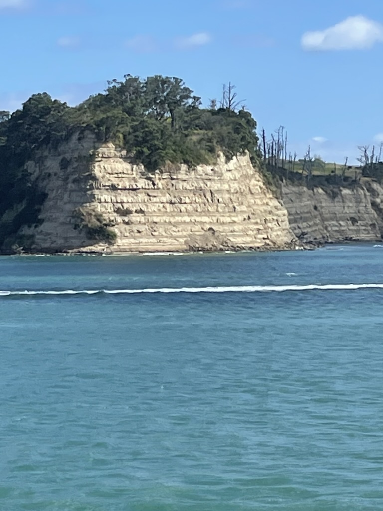 On our first day in New Zealand, we took a ferry ride to Waiheke Island. Waiheke Island is an island in the Hauraki Gulf of NZ. It is filled with untapped natural beauties like forests and sparkling white sand beaches. On the ferry ride to the island, we saw ancient volcanic islands and jagged cliffs – it felt almost alien, because nothing is volcanic like that in the east coast of the US.