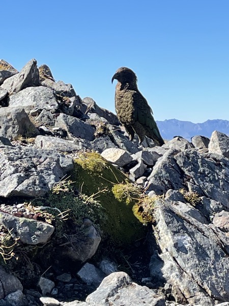 During lunch, we met a bird called the Kea, which is green with a grey beak and some blue feathers on its wings and grey feet. The Kea is an alpine parrot. Conservationists and wildlife guides can identify them by tiny ankle bracelets that go around their legs so that they know which bird is which. The Kea we saw jumped away from us at first, but then it started to go towards us. It went over to where we had our food and stole an apple. We didn’t see that bird for the rest of the day. Kea’s are clever, keen, friendly, and curious. Our guide, Helen, was a conservationist who handfed endangered chicks and then released the grownups back into the wild to breed.
